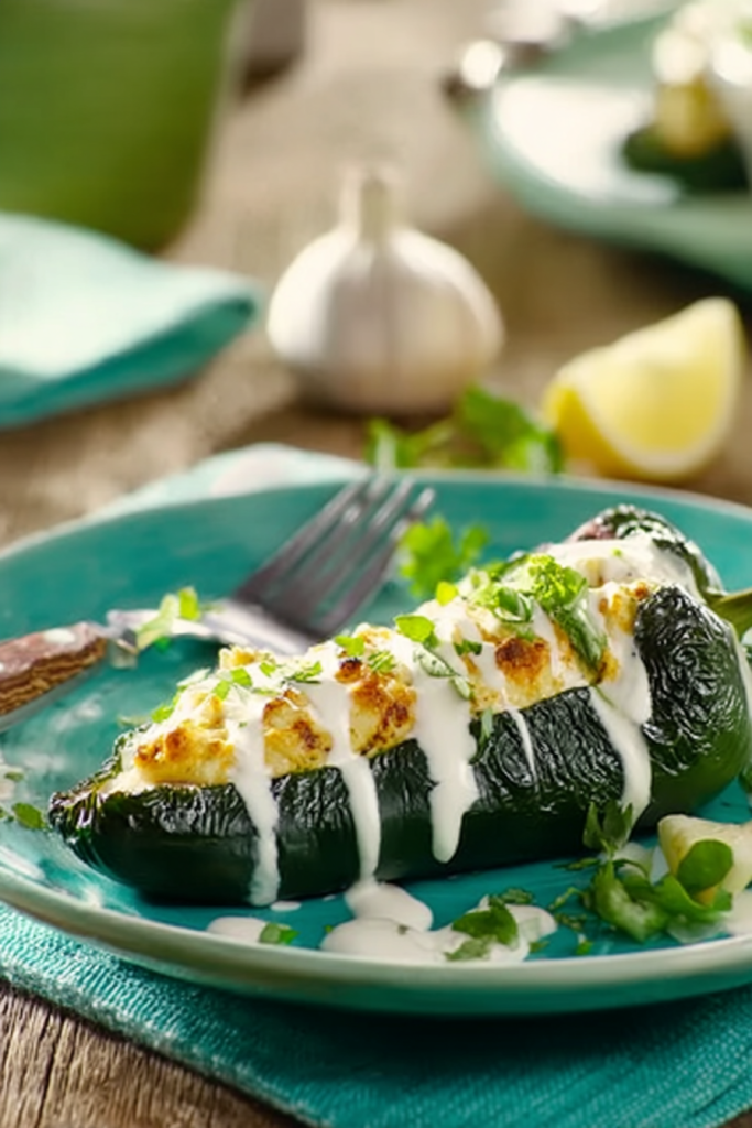Topped with creamy sour cream and melted Manchego cheese, these baked poblano peppers are smoky, hearty, and comforting—yet light enough for a weeknight dinner. Perfect for seafood lovers and anyone who wants a new way to enjoy Mexican cuisine!