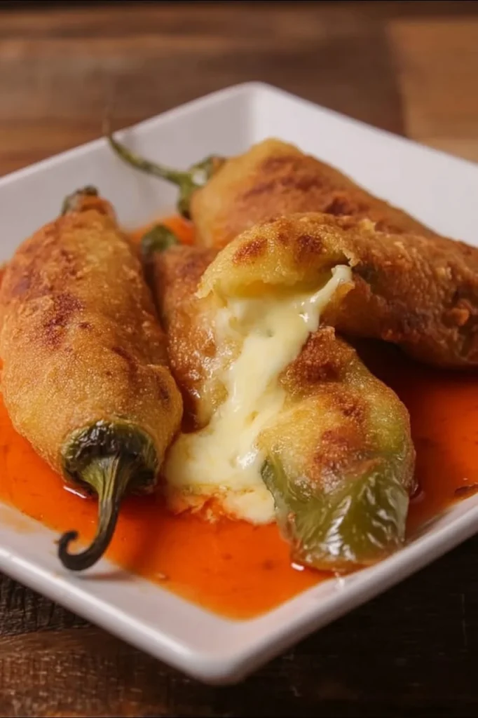 • Crispier Batter: Dust the peppers generously with flour before dipping into the egg mixture.