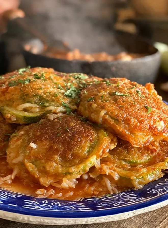 If you’re looking for a comforting, rustic Mexican dish straight from the countryside, Calabacitas Rellenas de Queso (stuffed zucchini with cheese) is the perfect recipe. Popular in traditional ranch homes, this dish takes simple ingredients—fresh zucchini, farm eggs, queso fresco, and tomatoes—and transforms them into something truly satisfying. The calabacitas are stuffed with cheese, dipped in a fluffy egg batter, fried until golden, and then simmered in a light tomato broth. It’s an affordable, wholesome, and delicious way to bring a taste of authentic Mexican cooking from mi rancho a tu cocina (my ranch to your kitchen).
